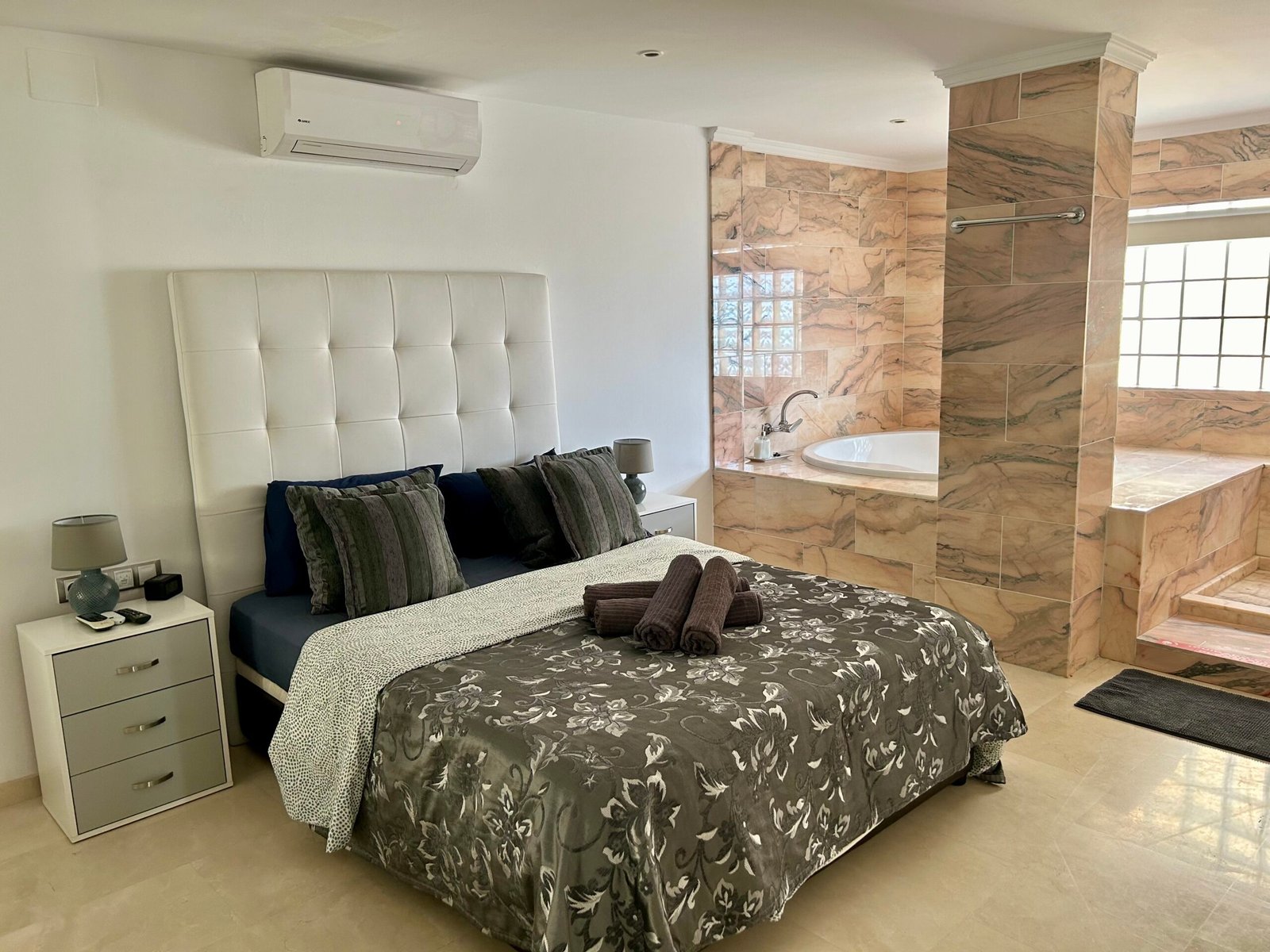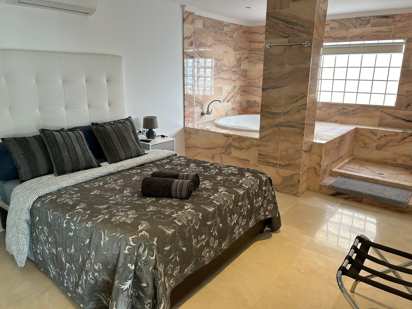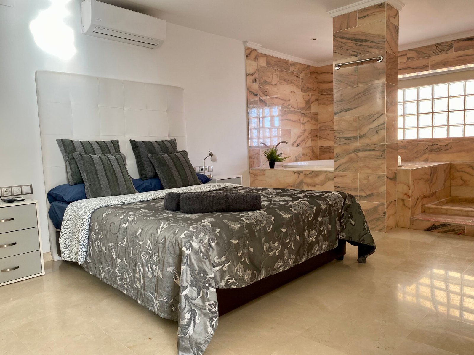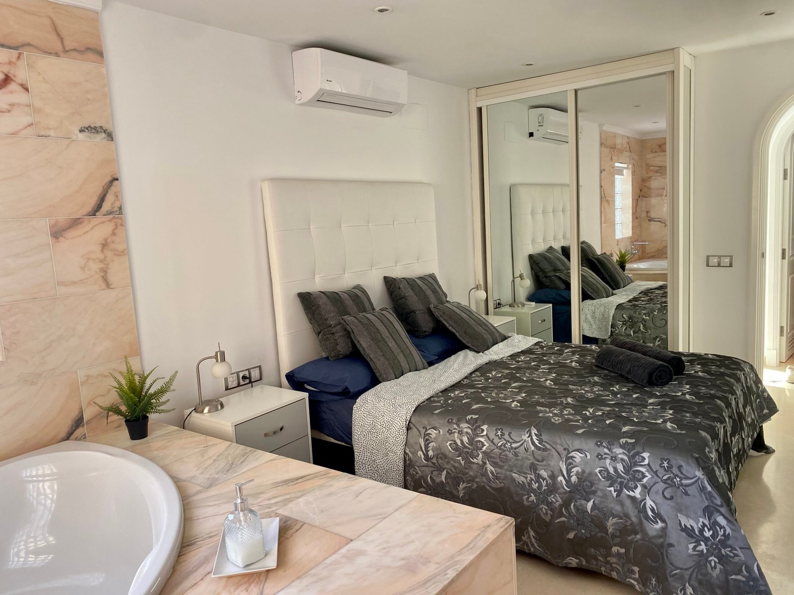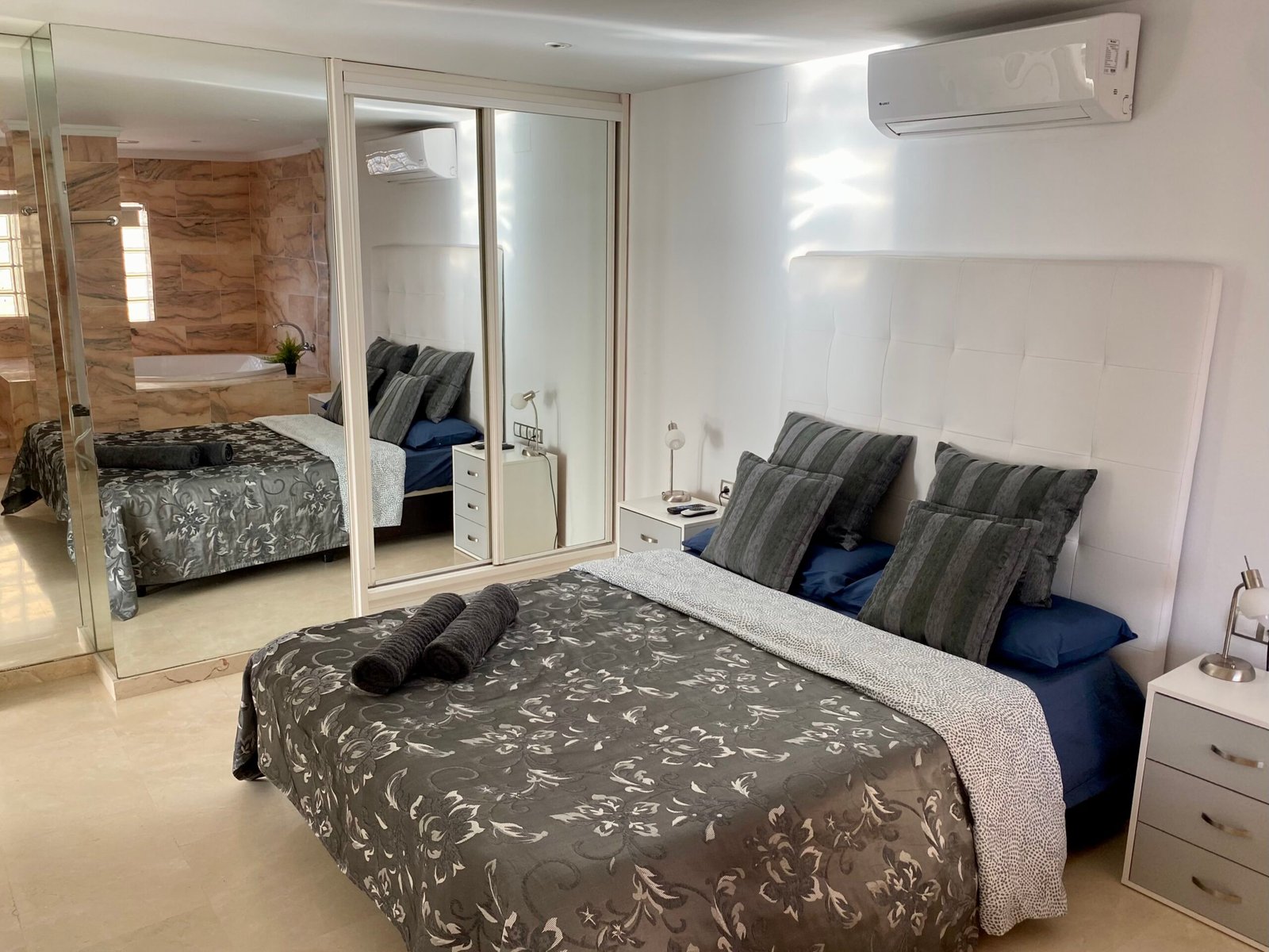 Die Suite mit 2 Schlafzimmern ist vollkommen ausgestattet, mit integrierter Küche, mit Ceranfeld, Kaffeemaschine, Wasserkocher, Mikrowelle, Toaster, Kühl- und Gefrierschrank, Klimanalage, kostenloses Wlan, Spülmaschine, Flachbild Smart TV mit Streaming Diensten (Netflix), Bad mit Dusche, WC, Fön, Bettwäsche, Handtücher, Safe und gemeinschaftliche Waschmaschine und Trockner.