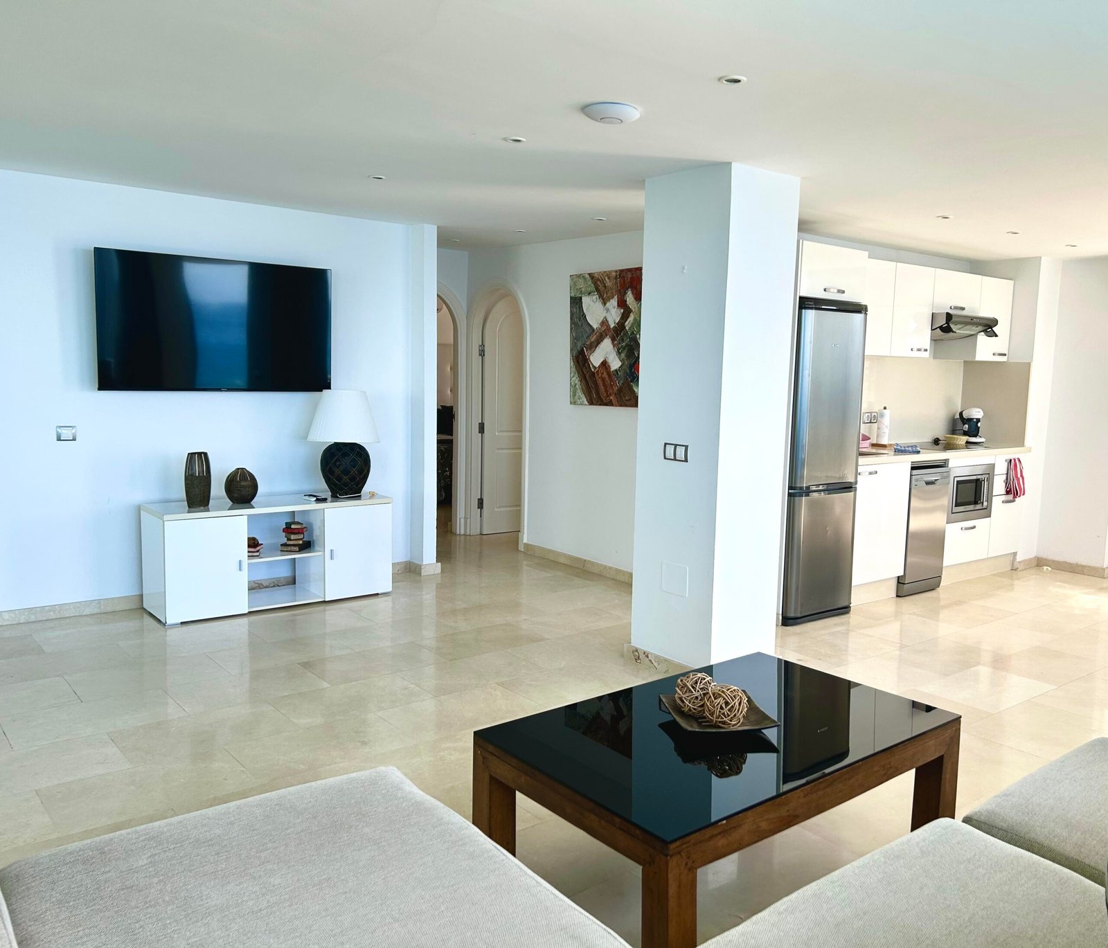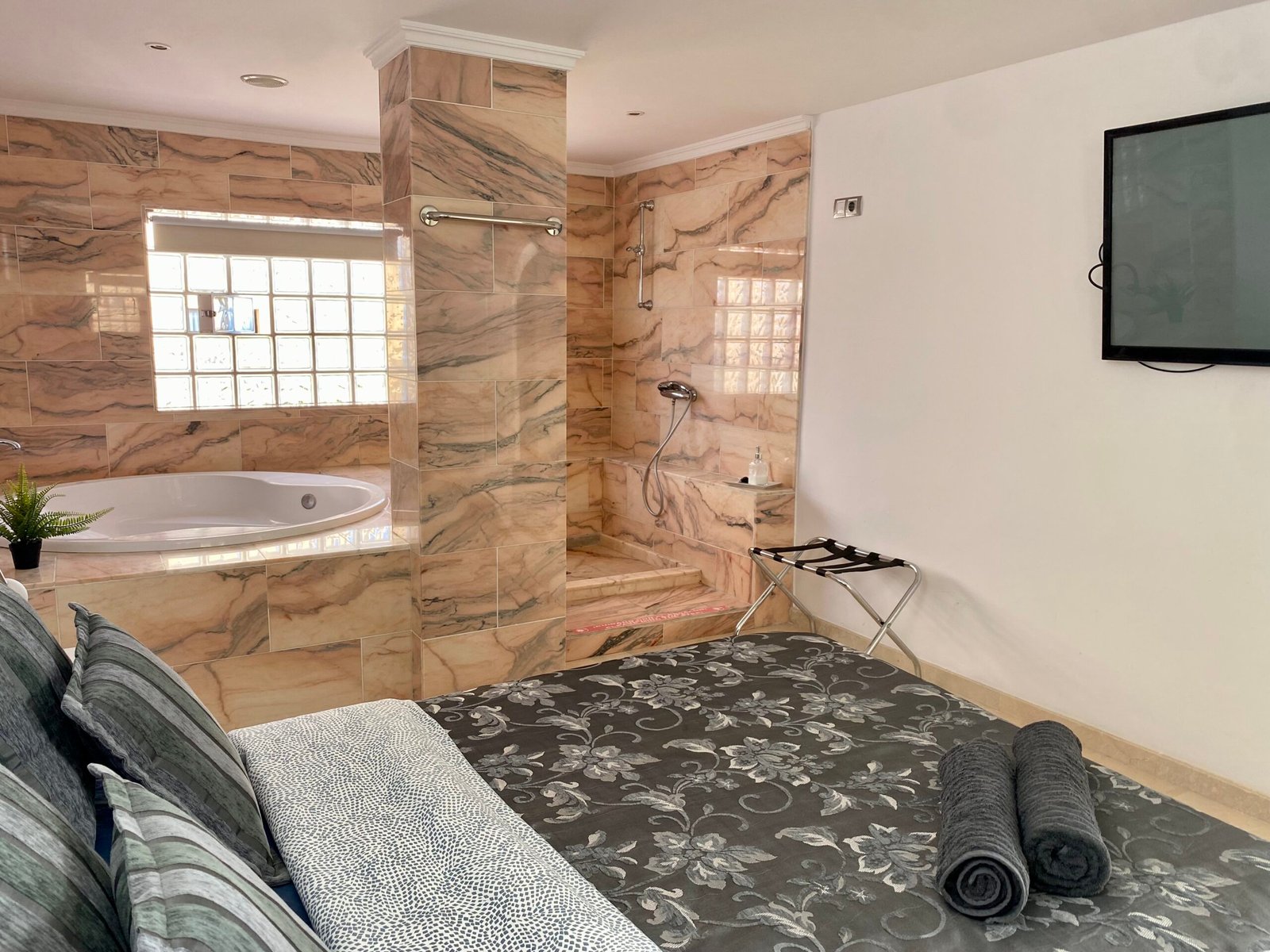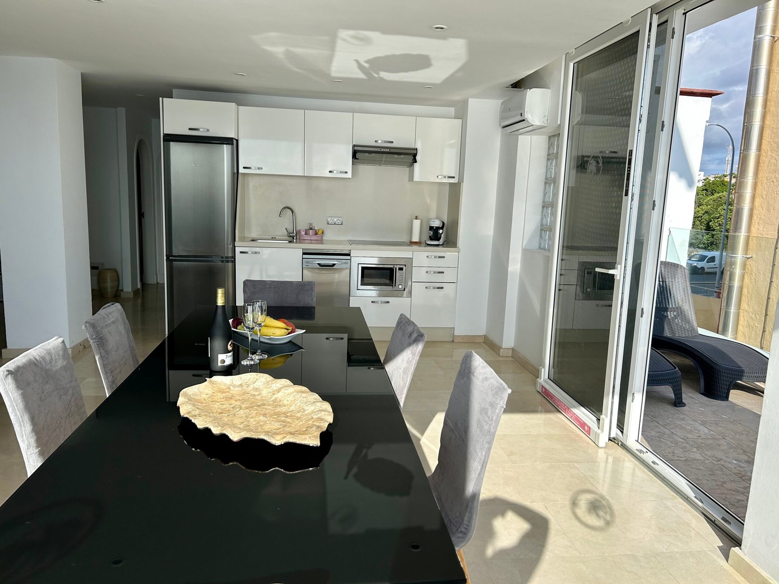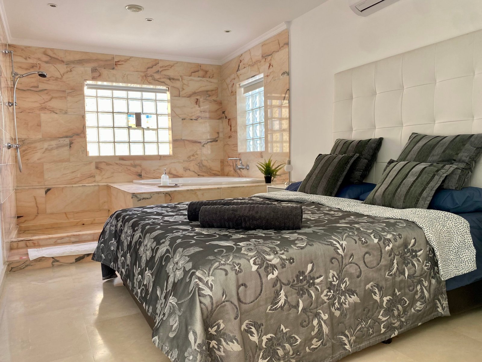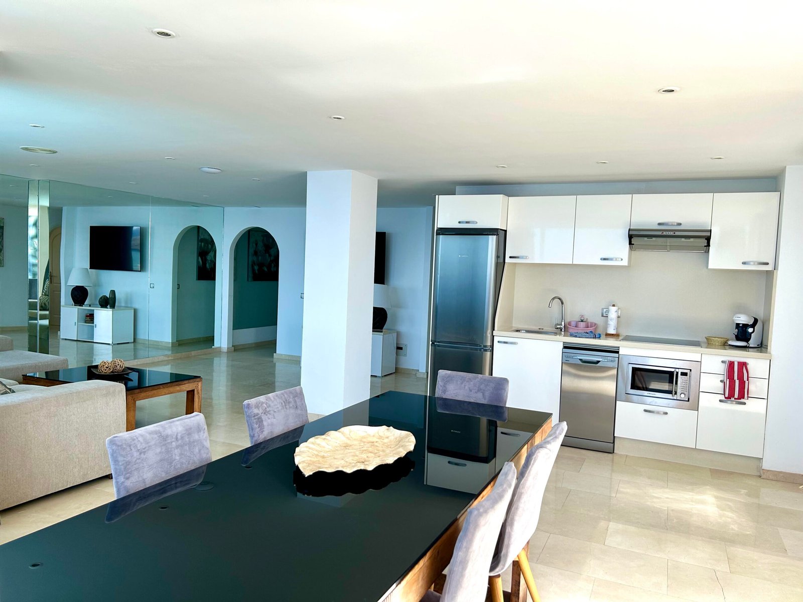 Die Suite mit 2 Schlafzimmern ist vollkommen ausgestattet, mit integrierter Küche, mit Ceranfeld, Kaffeemaschine, Wasserkocher, Mikrowelle, Toaster, Kühl- und Gefrierschrank, Klimanalage, kostenloses Wlan, Spülmaschine, Flachbild Smart TV mit Streaming Diensten (Netflix), Bad mit Dusche, WC, Fön, Bettwäsche, Handtücher, Safe und gemeinschaftliche Waschmaschine und Trockner.