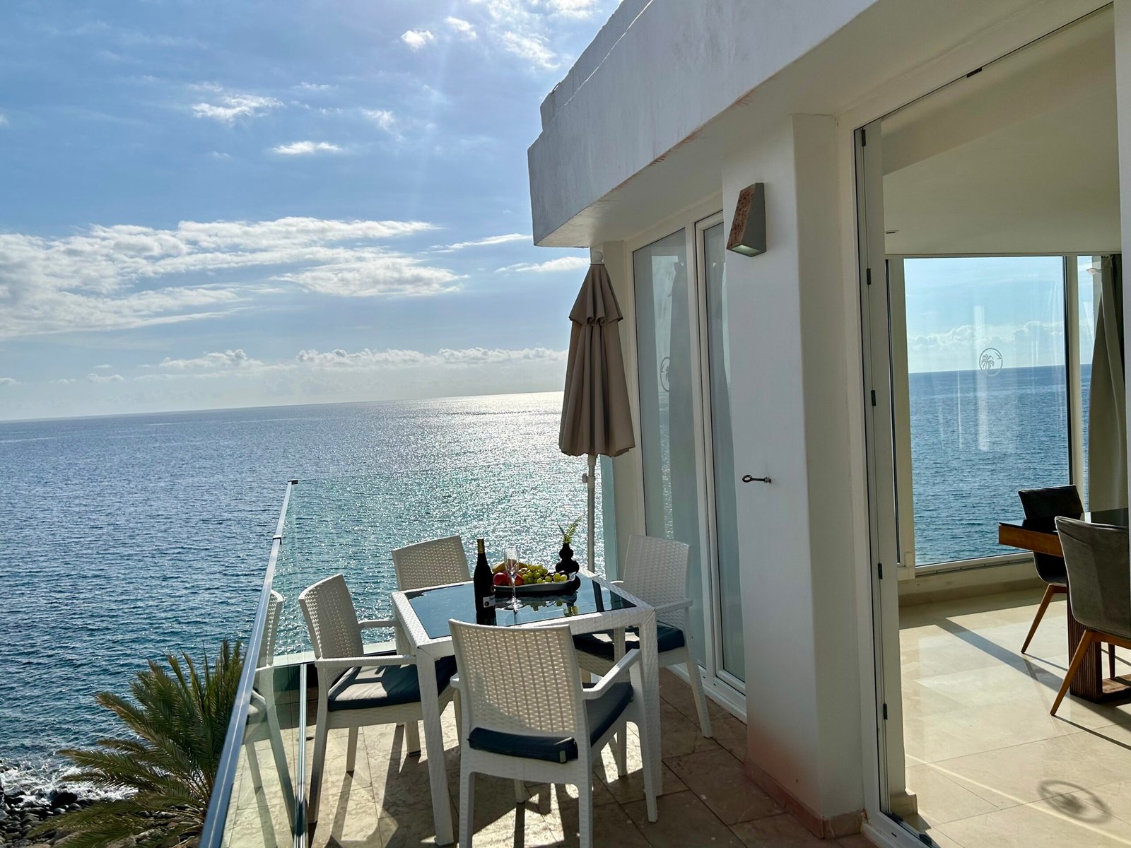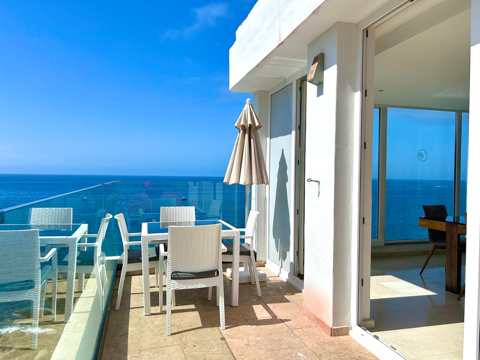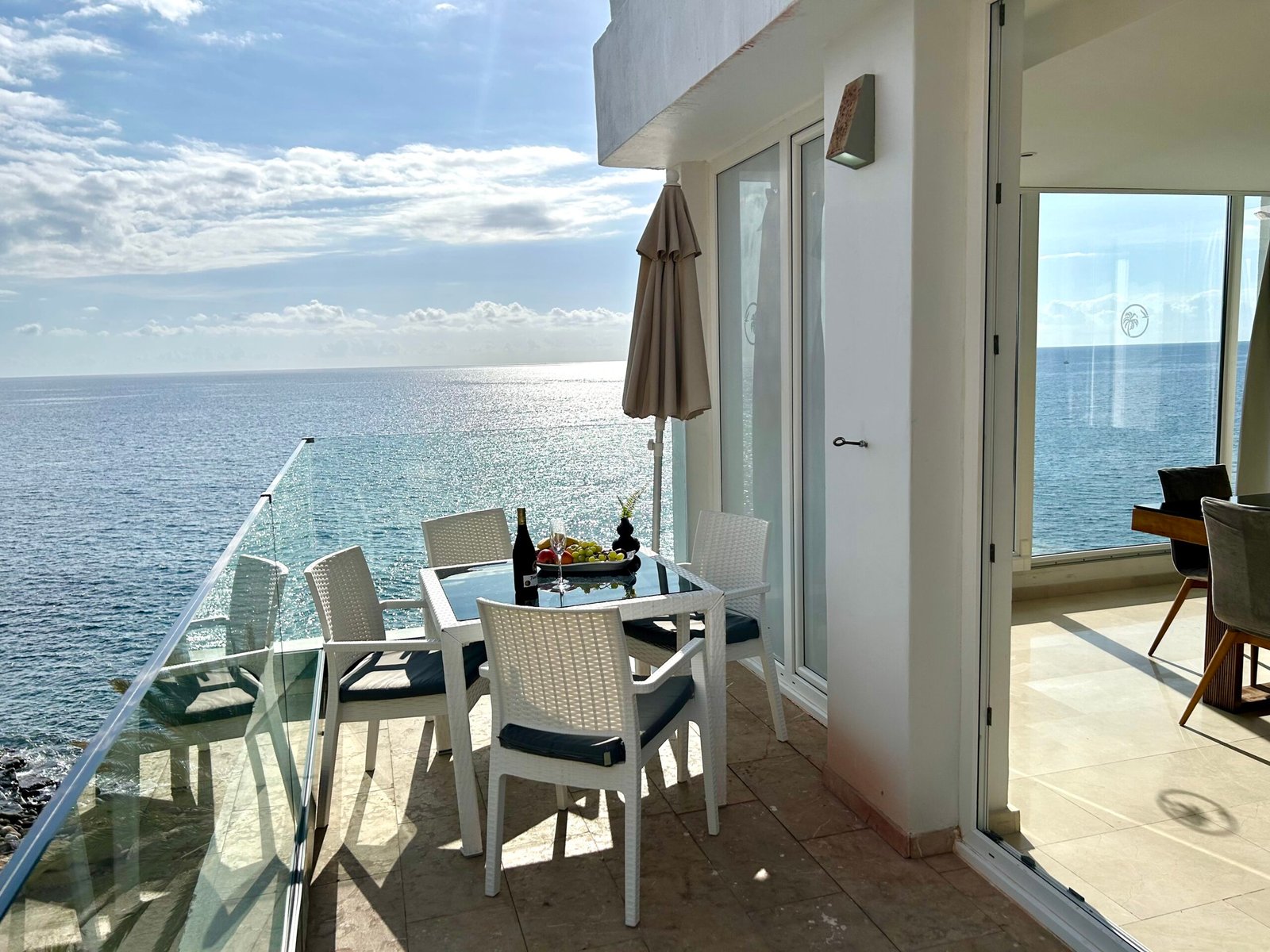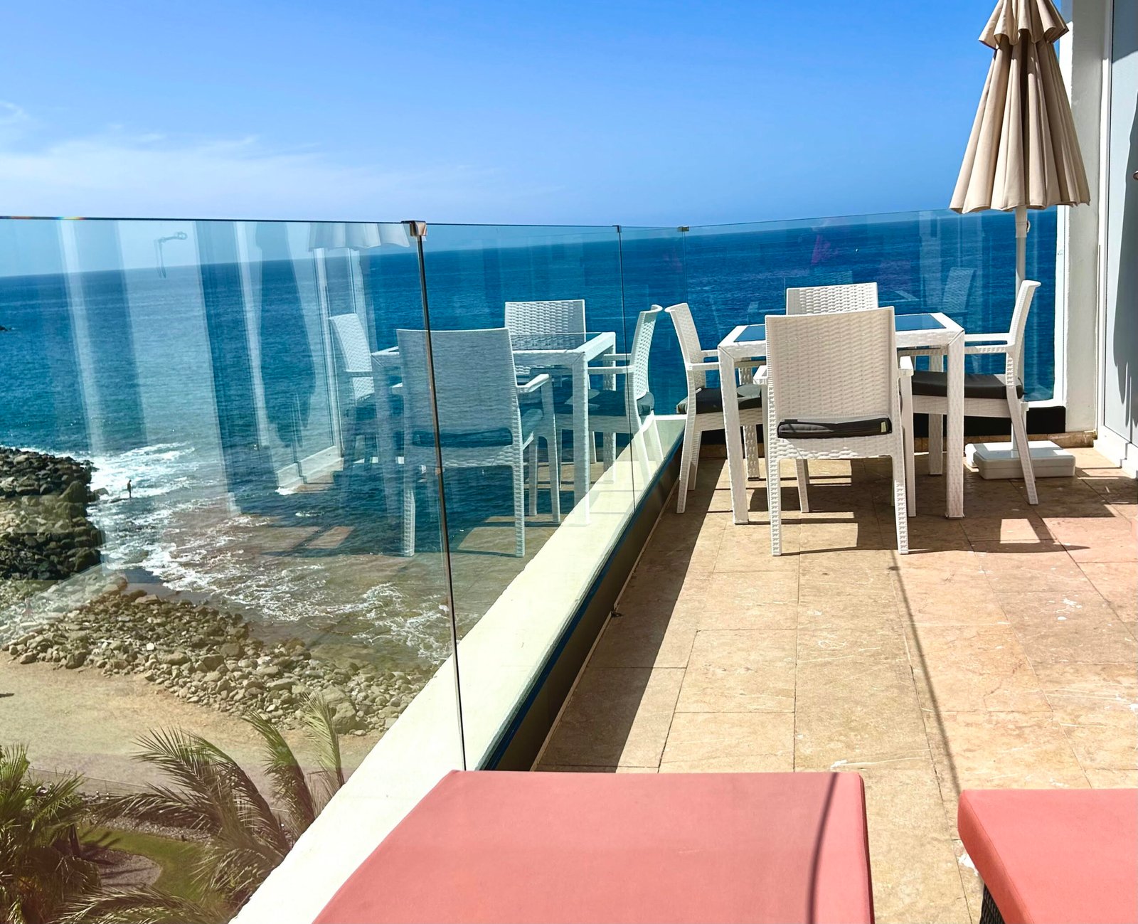 Luxuriöse 2 Schlafzimmer Suite mit Panorama Meerblick, Balkon, direkt am Strand. Wunderschönes luxuriöse 2 Schlafzimmer Suite in der erster Reihe zum Strand, mit unglaublichem Panorama Blick auf das Meer und die Sonnenuntergänge. Es verfügt über 2 Schlafzimmer mit jeweils eigener Badewanne, einem Marmorbad mit Doppeldusche und extra WC Bad. Eine voll ausgestattete Küche und Zugang zum Pool. Mit direktem Zugang zum Strand ist es ein perfekter Ort, um zu zweit oder mit der Familie abzuschalten. Es bietet auch eine ideale Terrasse zum Frühstücken oder Sonnenbaden.