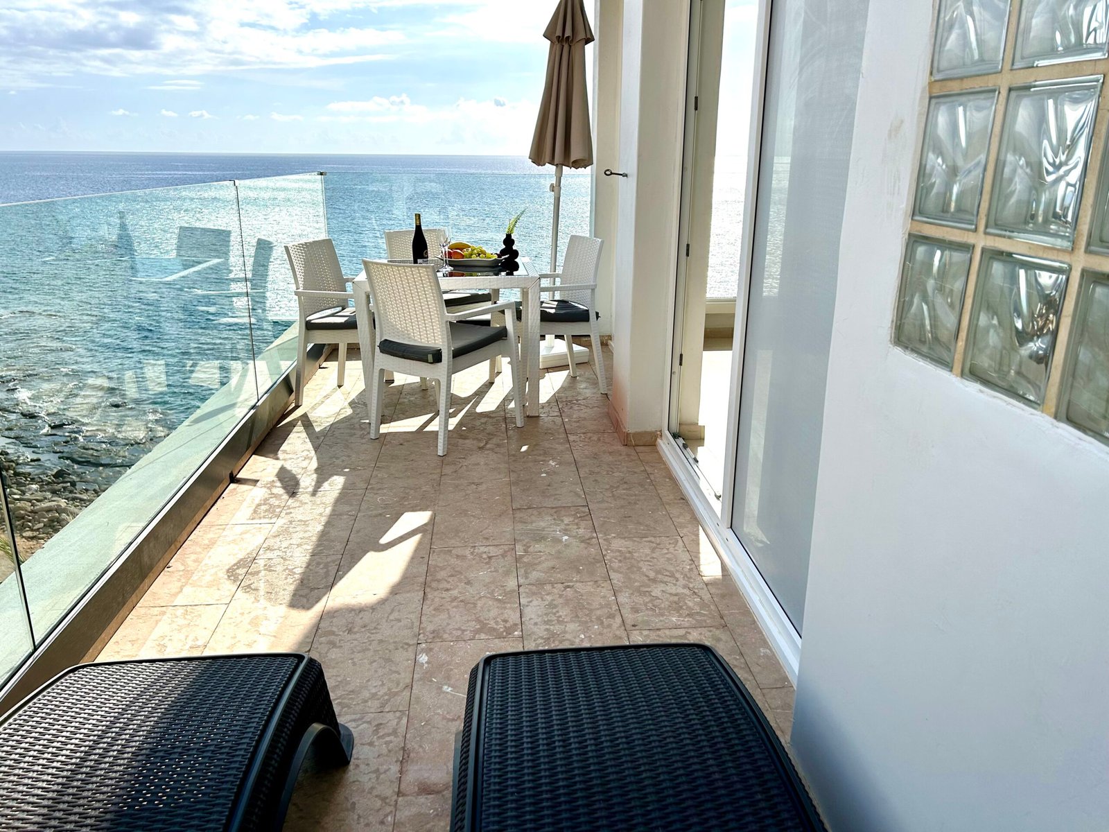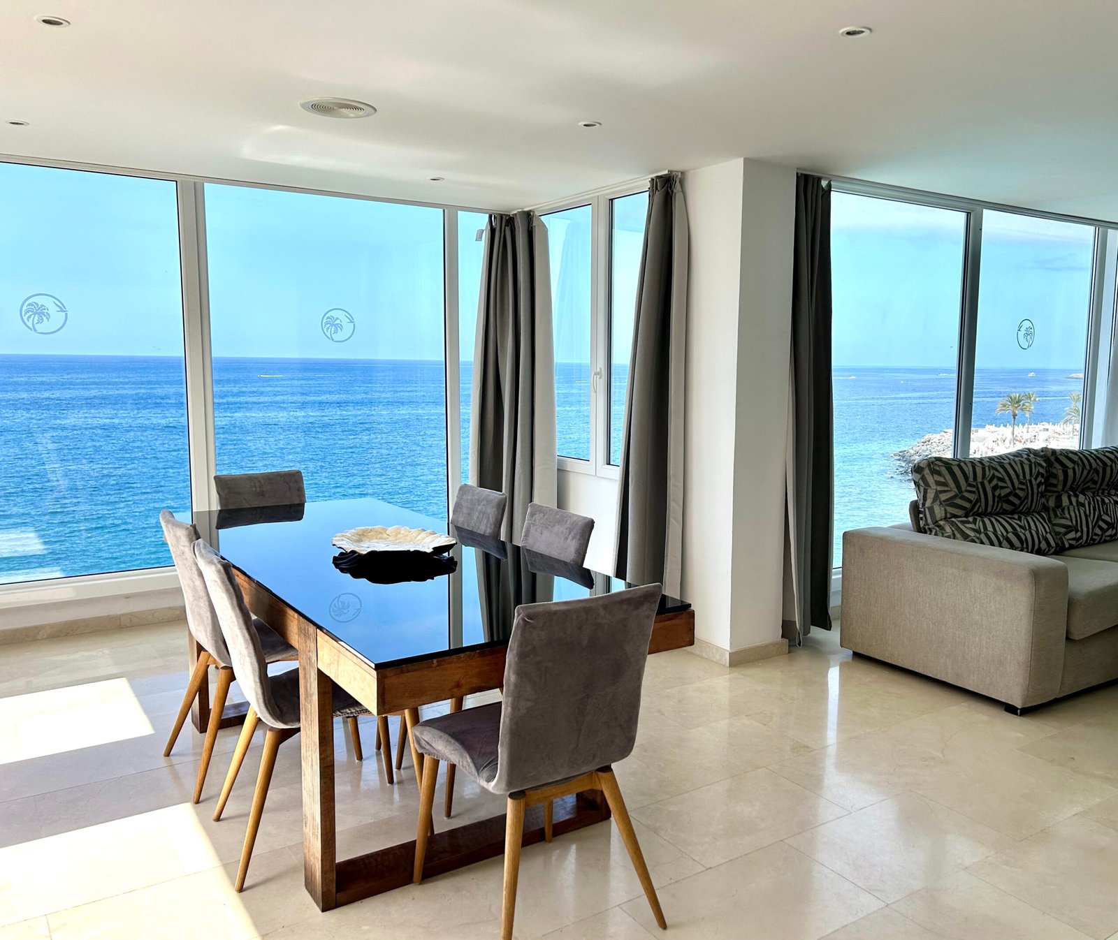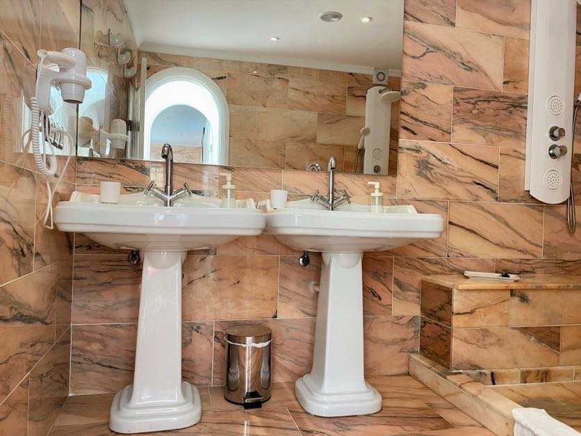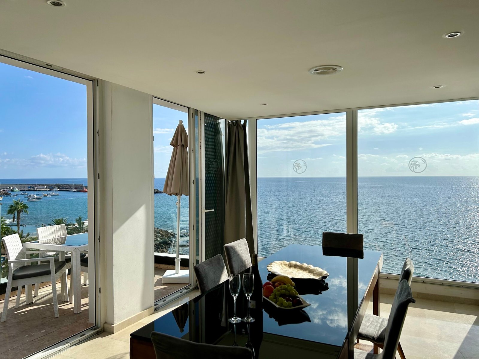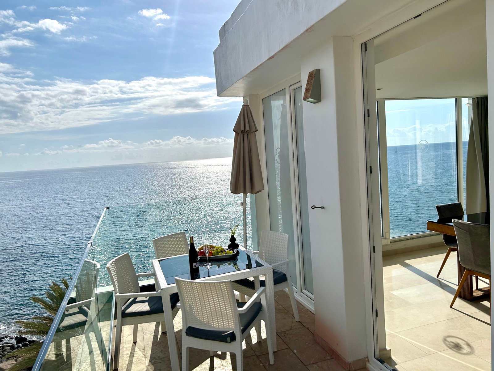 Luxuriöse 2 Schlafzimmer Suite mit Panorama Meerblick, Balkon, direkt am Strand. Wunderschönes luxuriöse 2 Schlafzimmer Suite in der erster Reihe zum Strand, mit unglaublichem Panorama Blick auf das Meer und die Sonnenuntergänge. Es verfügt über 2 Schlafzimmer mit jeweils eigener Badewanne, einem Marmorbad mit Doppeldusche und extra WC Bad. Eine voll ausgestattete Küche und Zugang zum Pool. Mit direktem Zugang zum Strand ist es ein perfekter Ort, um zu zweit oder mit der Familie abzuschalten. Es bietet auch eine ideale Terrasse zum Frühstücken oder Sonnenbaden.