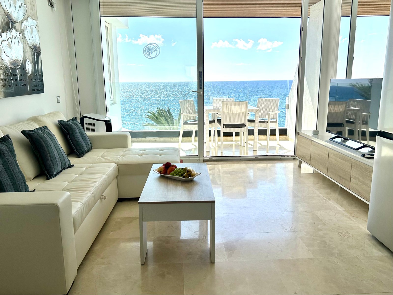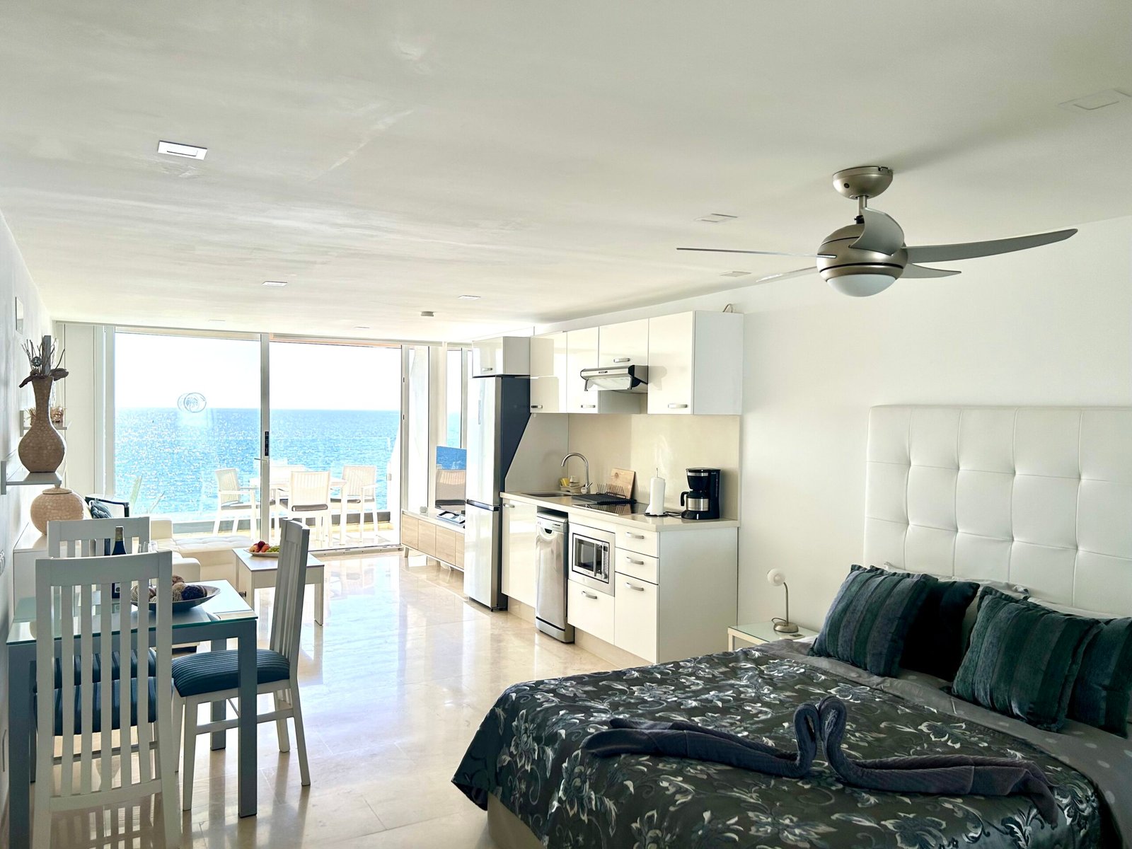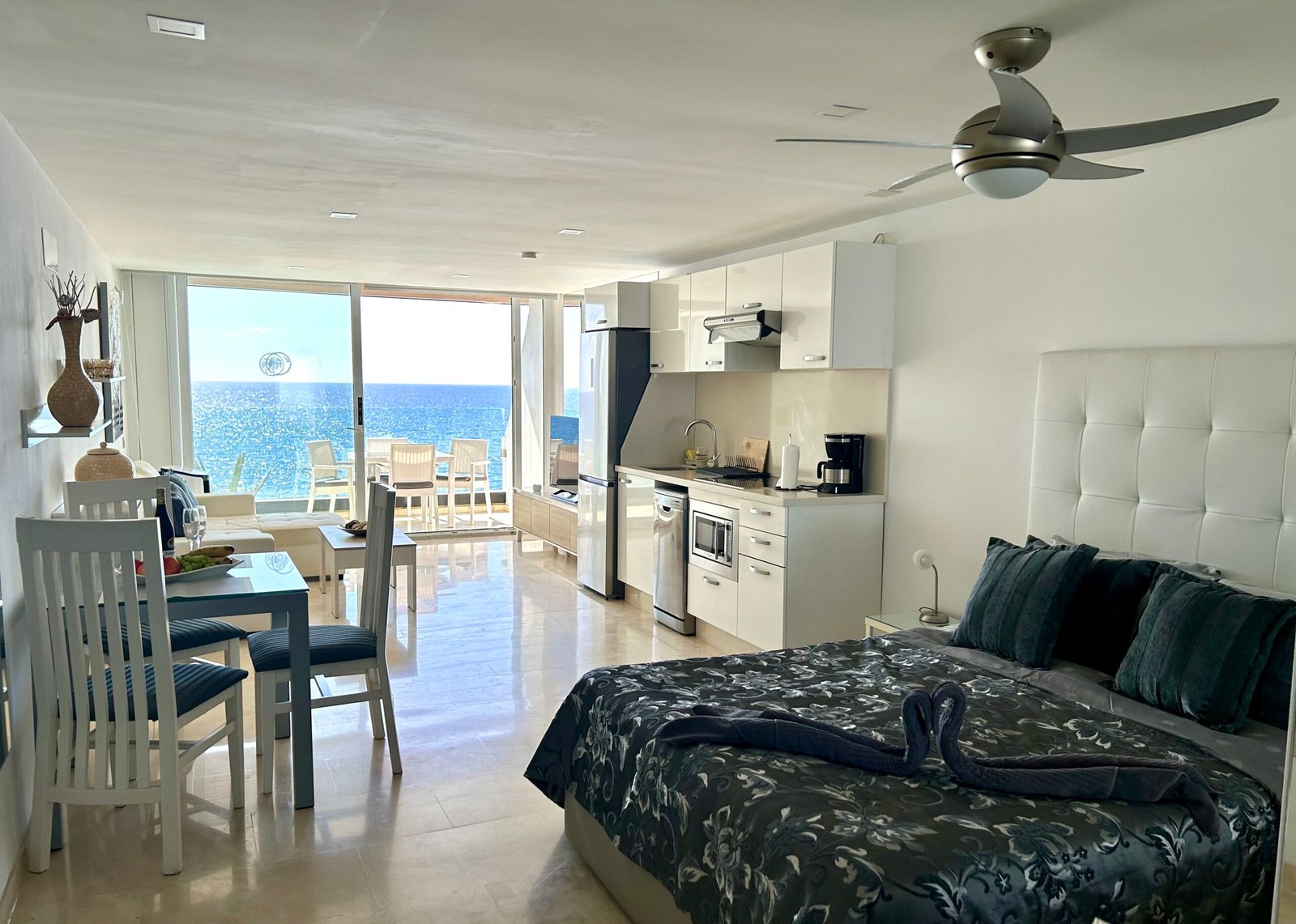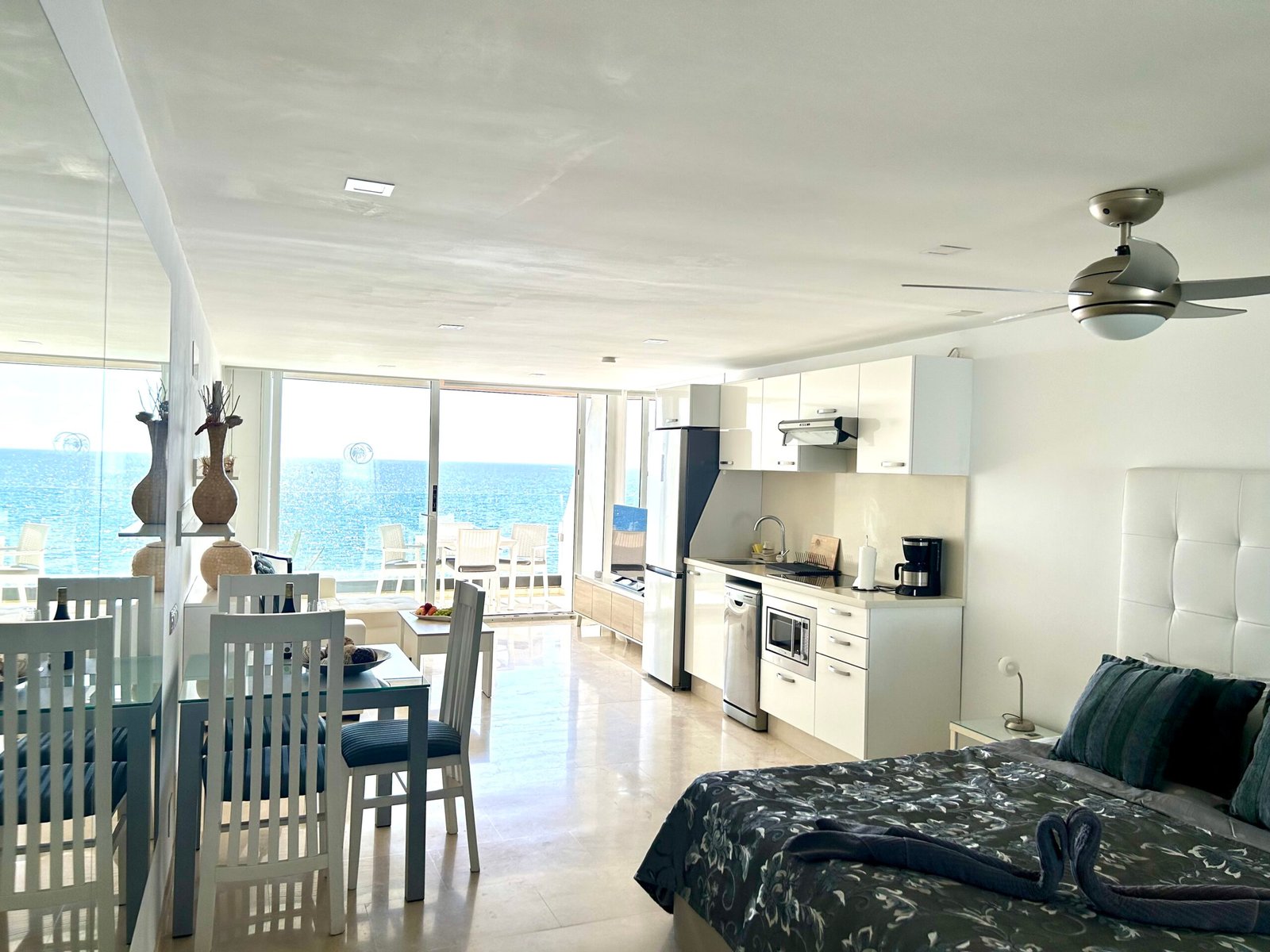 Das Studio-Apartment liegt direkt am Strand mit fantastischem Meerblick.