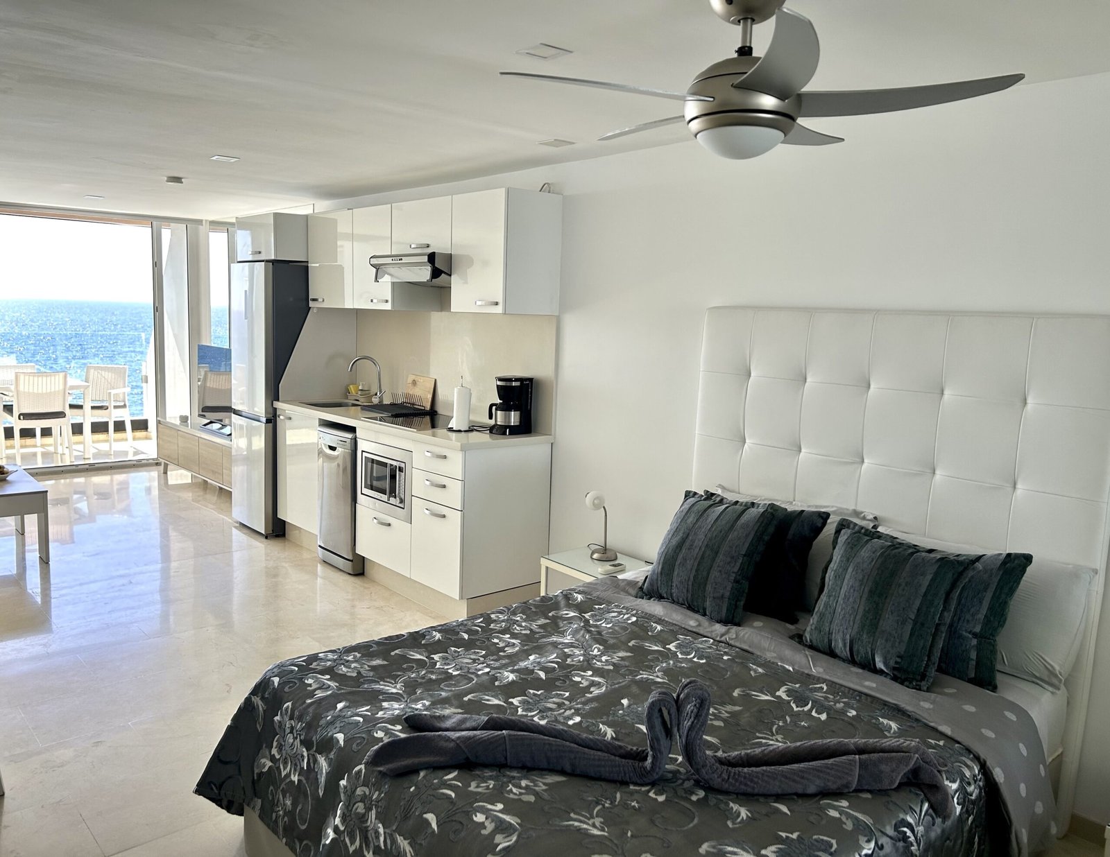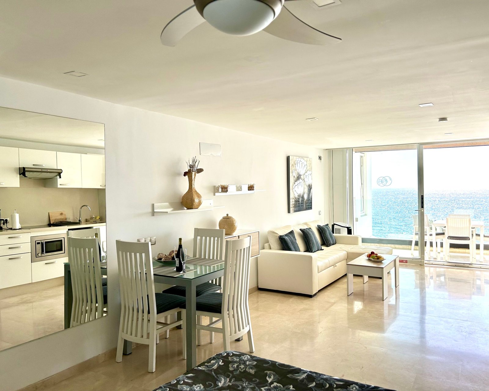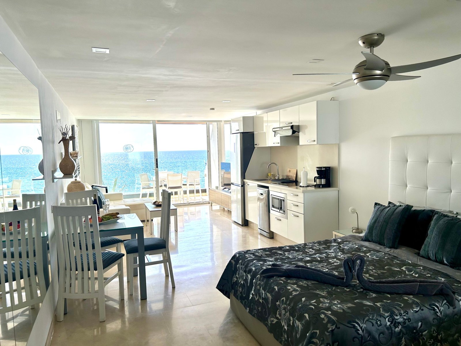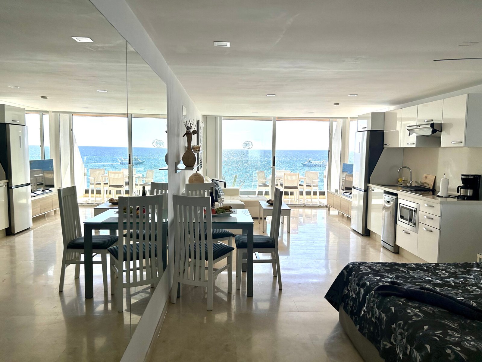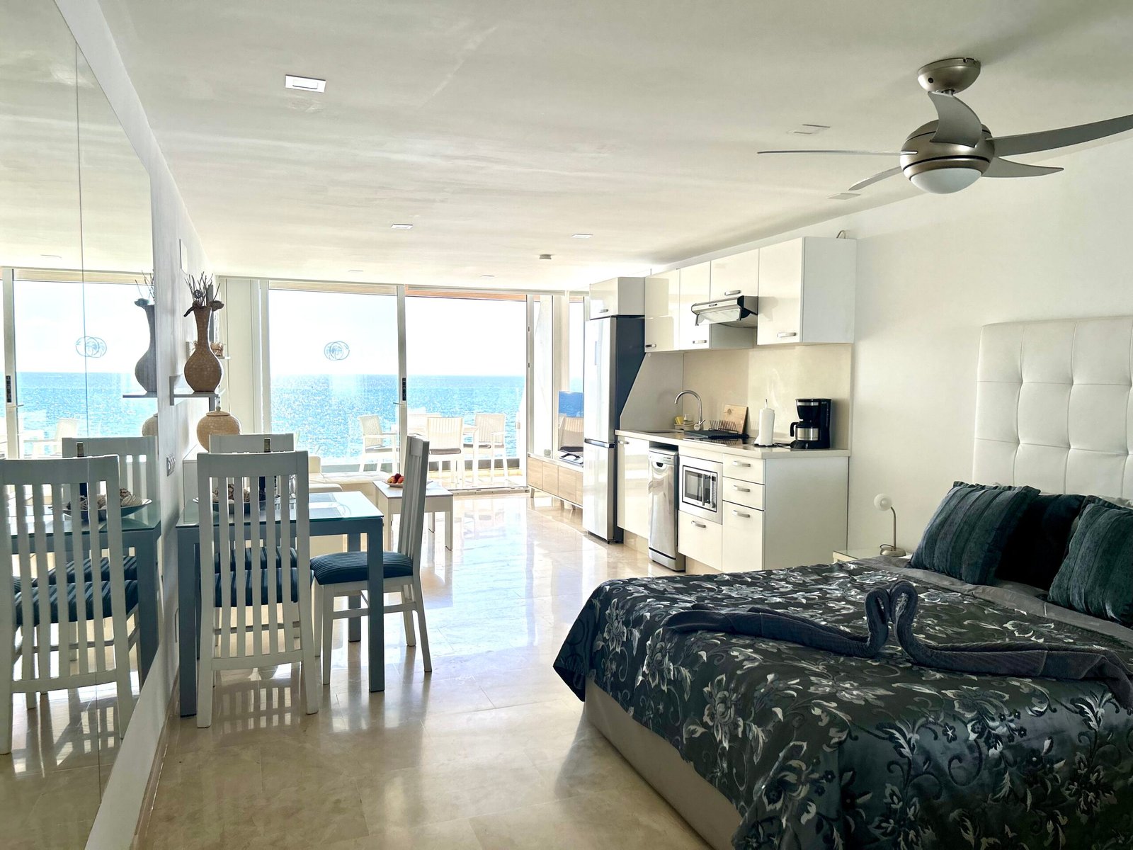 Das Studio-Apartment liegt direkt am Strand mit fantastischem Meerblick.