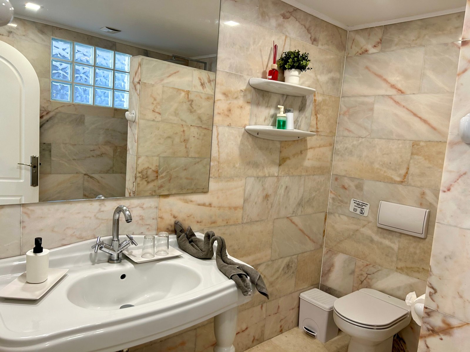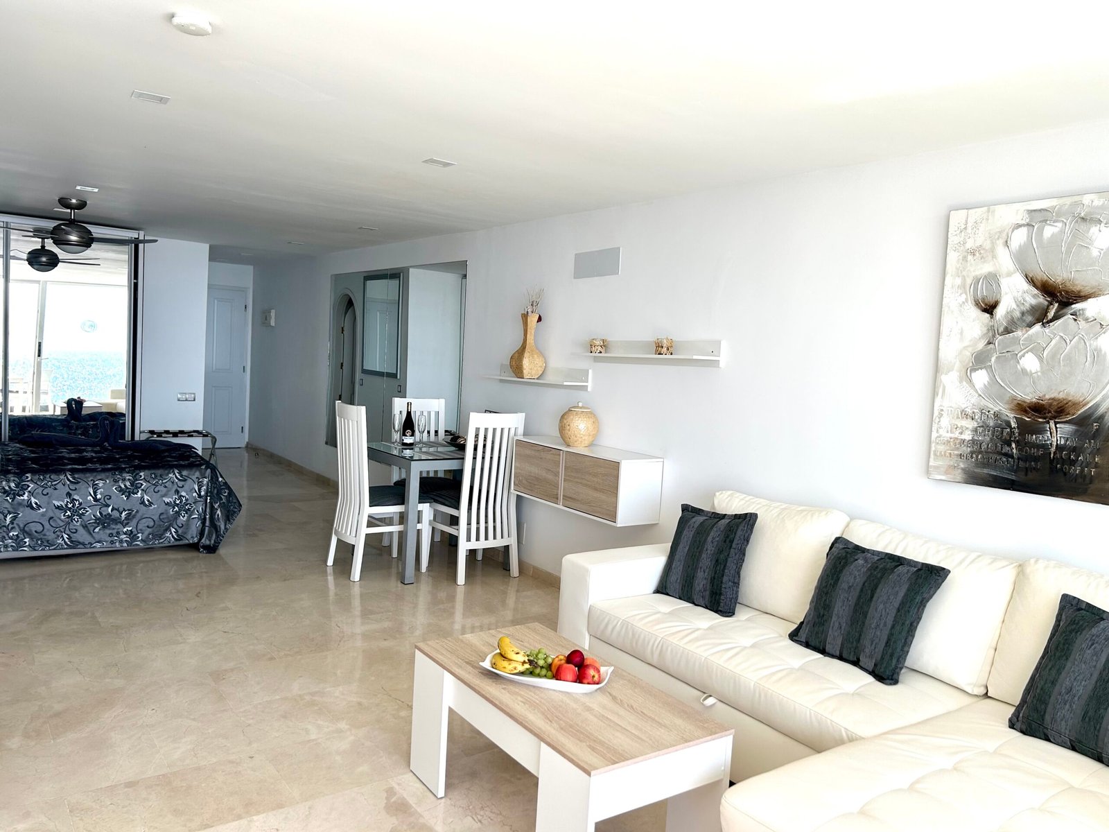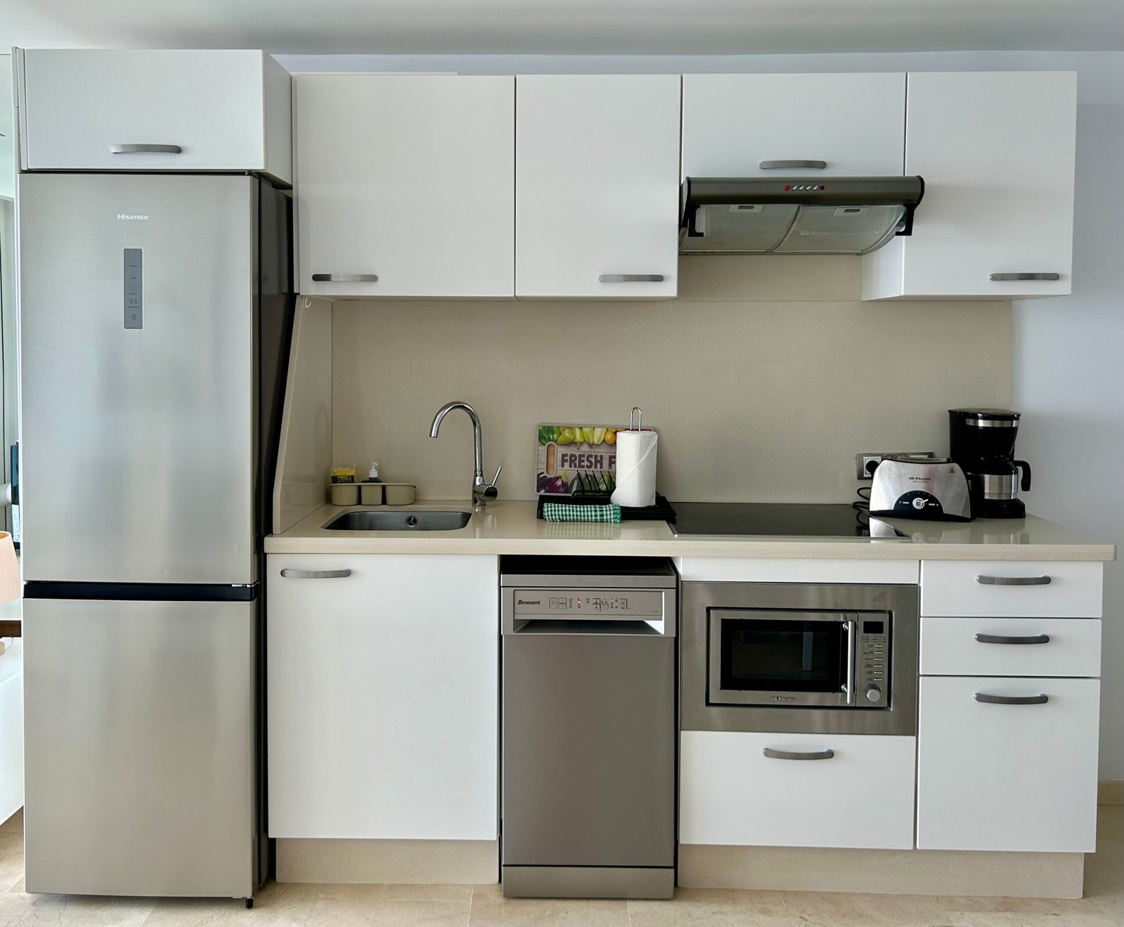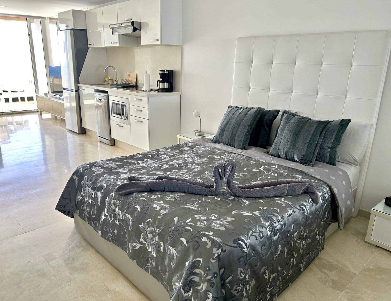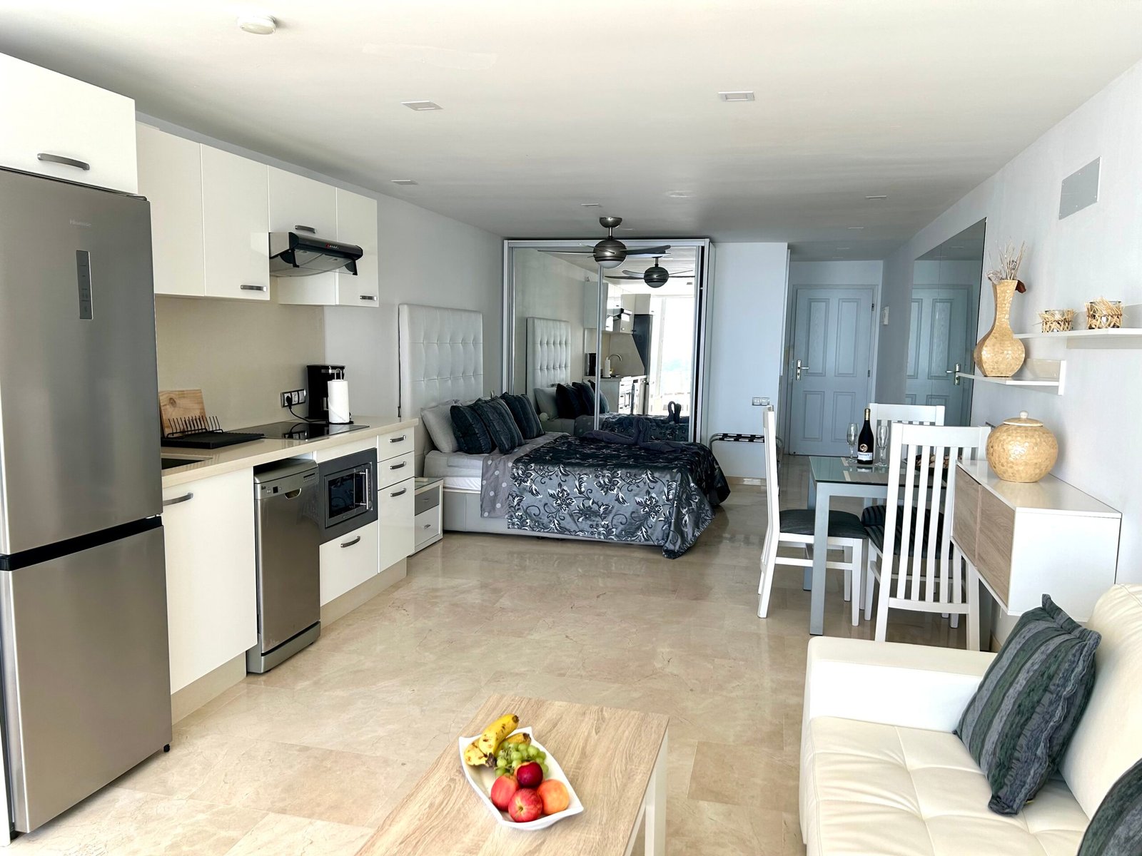 Das Studio Apartment ist vollkommen ausgestattet, mit integrierter Küche, mit Ceranfeld, Kaffeemaschine, Wasserkocher, Mikrowelle, Toaster, Kühl- und Gefrierschrank, Klimanalage, kostenloses Wlan, Spülmaschine, Flachbild Smart TV mit Streaming Diensten (Netflix), Bad mit Dusche, Fön, Bettwäsche, Handtücher, Safe und gemeinschaftliche Waschmaschine und Trockner.